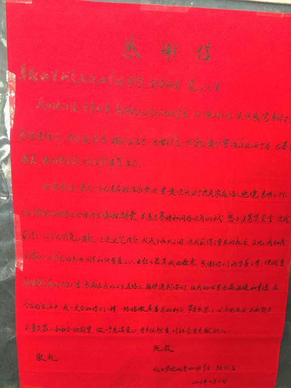 经过近两个月入院治疗,张任洁现已康复在家休养。透过感谢信,处处流露出家人的感激和喜悦,处处体现出学校“一心为了学生、为了学生一切”的关怀。在其家人面临高额治疗费用负债不堪一筹莫展的时候,是学校领导、学院领导、广大教师,校友、爱心学子伸出的温暖的手,伴她战胜病魔,重返校园。